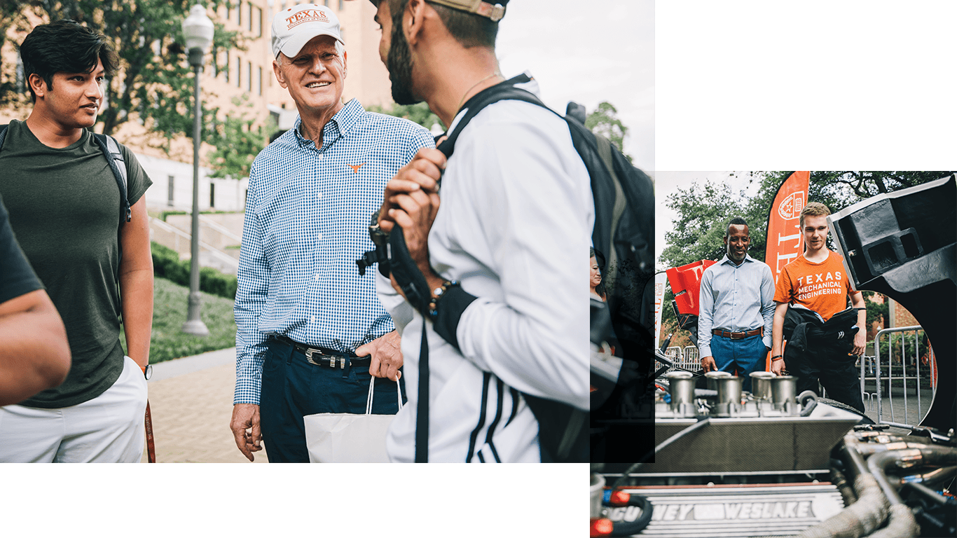 Thomas talks to current UT students at an on-campus car show.